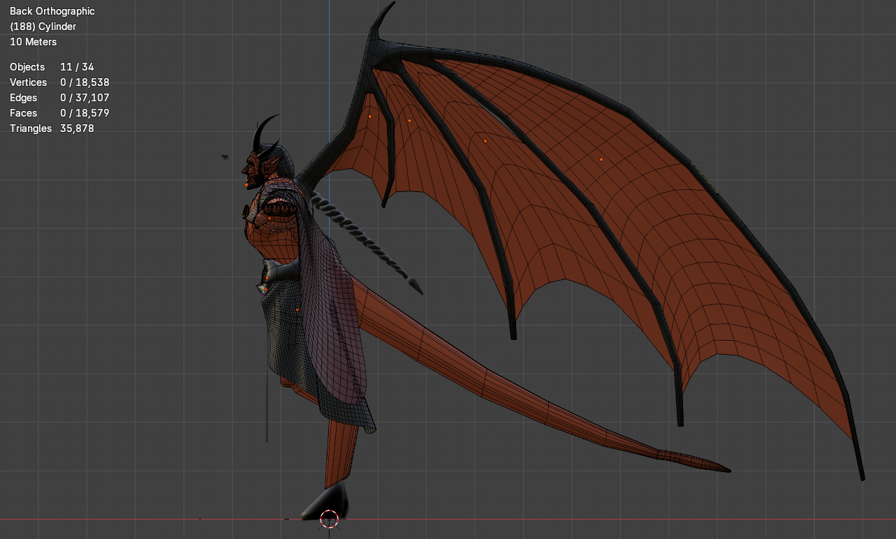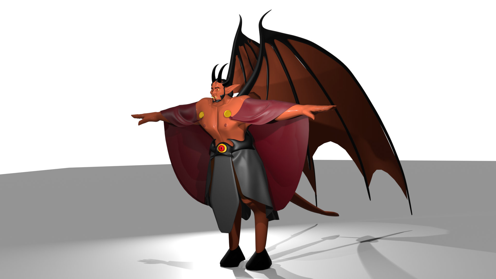 One of my first character models, Asmodeus was inspired by one of the central villains in my latest Dungeons and Dragons campaign. Prior to this, I had only modeled human characters, so his horns and irregular ears taught me a lot about maintaining my topology while improvising. I also learned about simple cloth simulation.